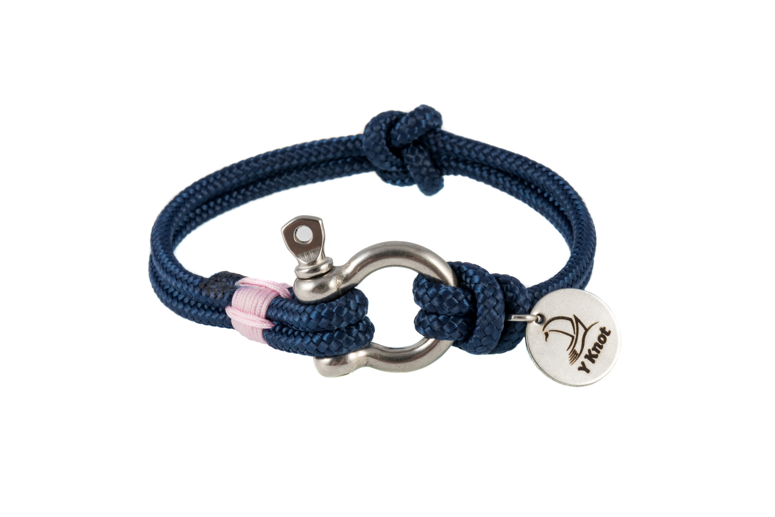 Sea_navy nautical bracelet is high quality product made with navy nautical rope 3 -4 mm diameter, with pink stitching and stainless steel shackle.
