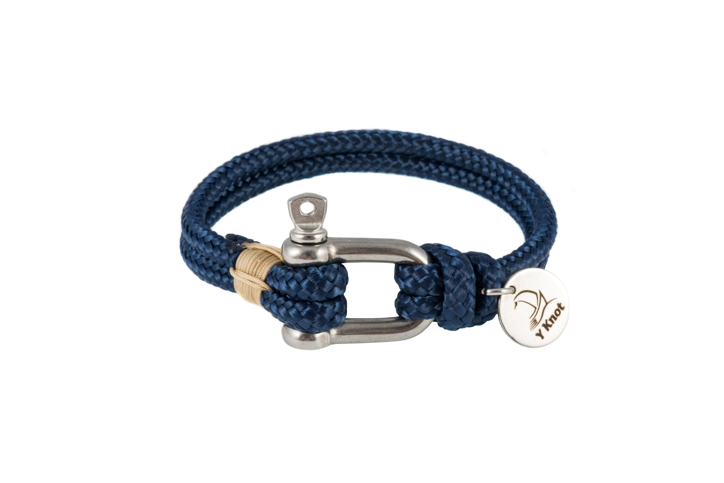 This nautical bracelet is high quality product for men and women , made of navy nautical rope with beige stitching and stainless steel shackle.